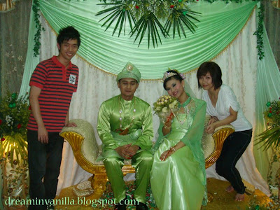 So I went to this fren's wedding..her name is Wawa...omg...there's sooo many people..I mean...the whole street of her house area was cover with people,tables and food. haha. But one thing I feel kinda scary for malay wedding..no offence..my scary means...they seems have to be somehow...serious...maybe that looks more elegant gua..I dont know...